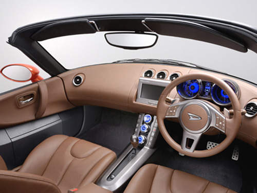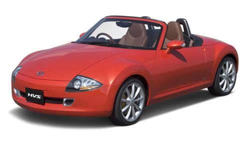 The Daihatsu HVS Concept is a 2-seater. Dimensions are 3715x1695x1235 (l x w x h). The front motors are rated at 36kW and the rear is a left-right controllable 20kW motor. These electric motors draw power from a Nickle Hydride battery system. The petrol engine is a 1.5 DOHC with DVVT rated at 77kW at 6000rpm with 140Nm of torque at 4400rpm. The car also comes with a CVT transmission.