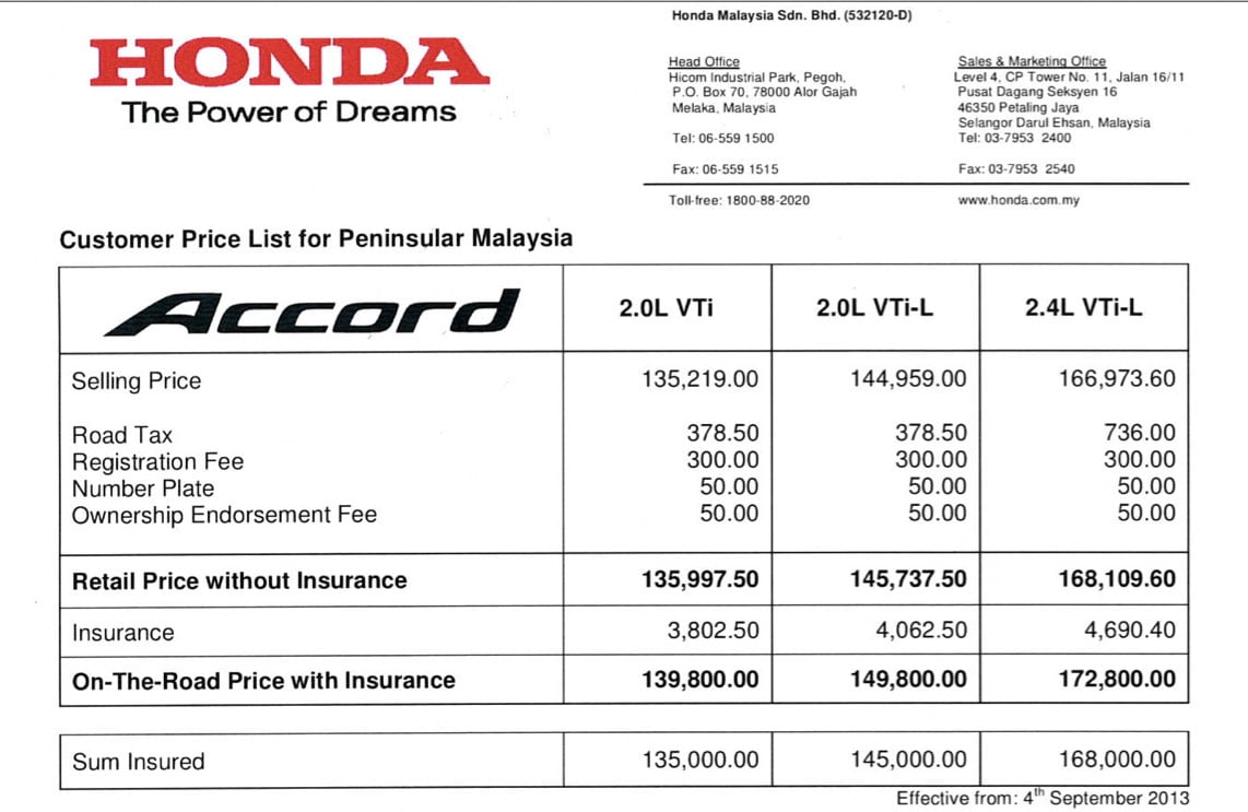 Honda Accord launched in Malaysia – from RM140k