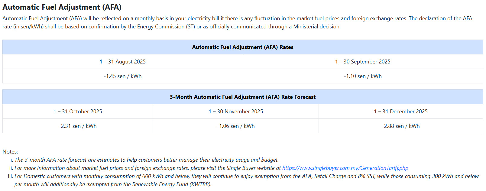 TNB: ST’s AFA rate for Sept 2025 set at -1.10 sen/kWh