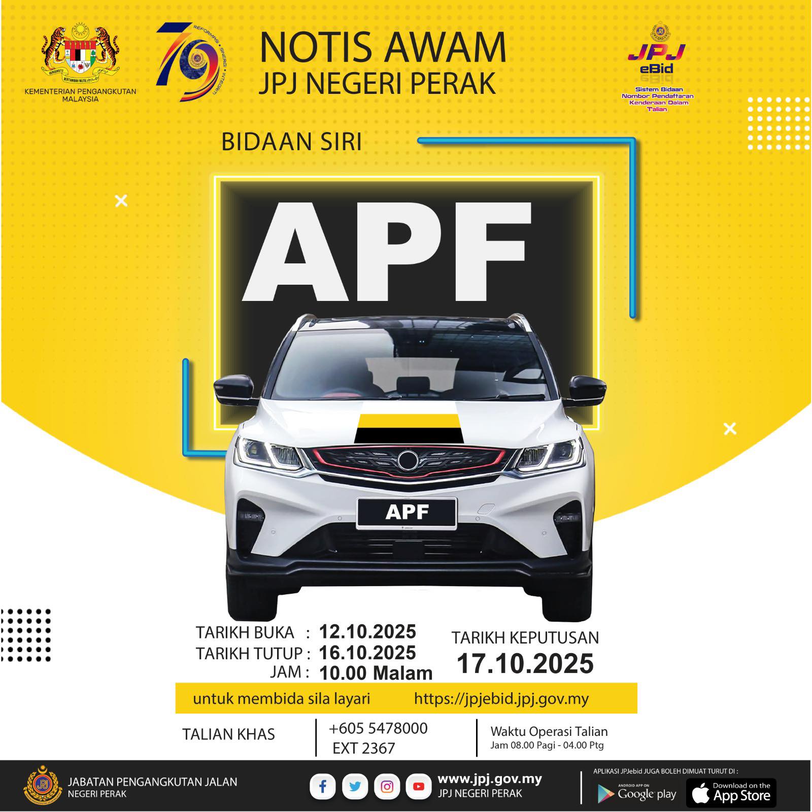 JPJ eBid: APF and CFE number plates up for bidding